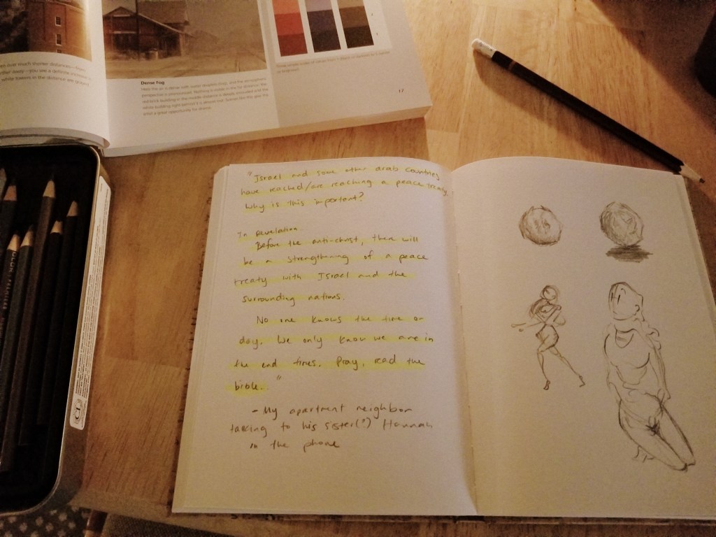 Perspective study, doodles, + eavesdropping